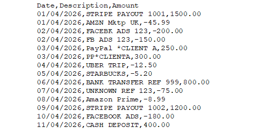 Turn messy bank CSV exports into clean, structured data ready for bookkeeping.