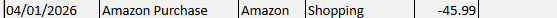 This entry contains an abbreviated merchant description. It has therefore been standardised to Amazon Purchase, with the merchant identified as Amazon and the transaction categorised consistently.