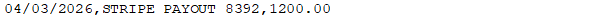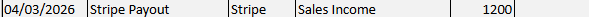 STRIPE PAYOUT 8392 clearly indicates a payout received from Stripe. The description has been standardised to Stripe Payout, the merchant identified as Stripe, and the transaction categorised as Sales Income.Â