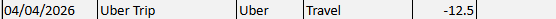 This entry has been standardised to Uber Trip, with the merchant identified as Uber and the transaction categorised as Travel.